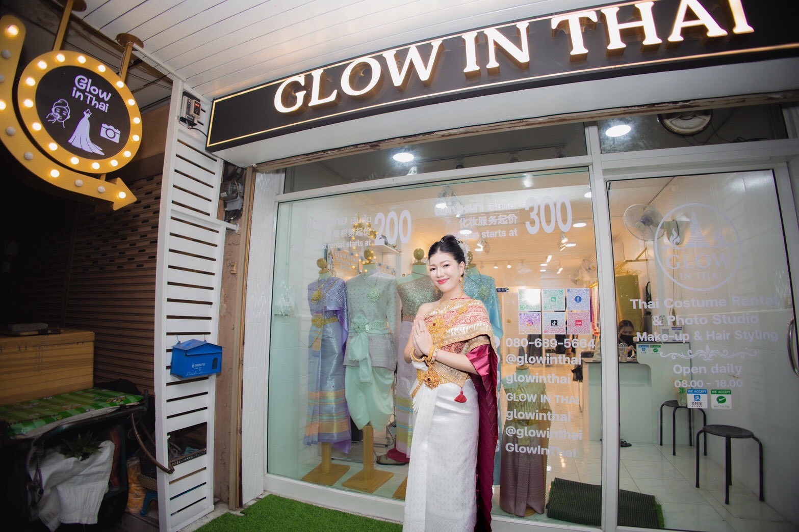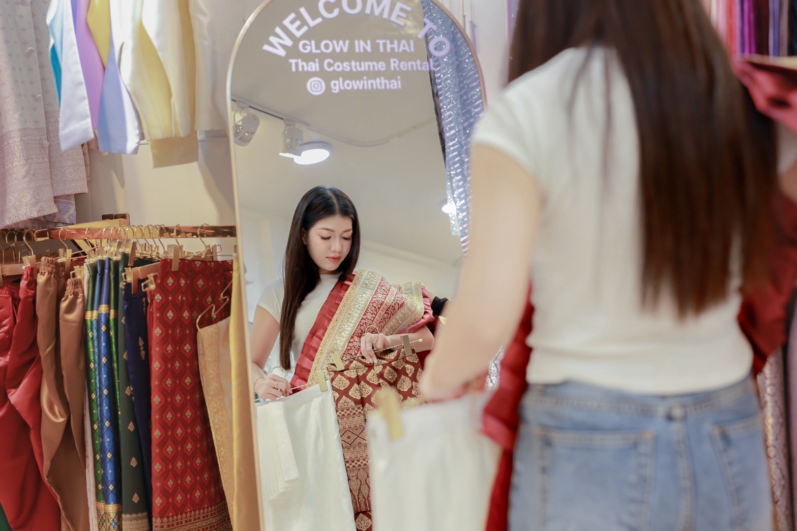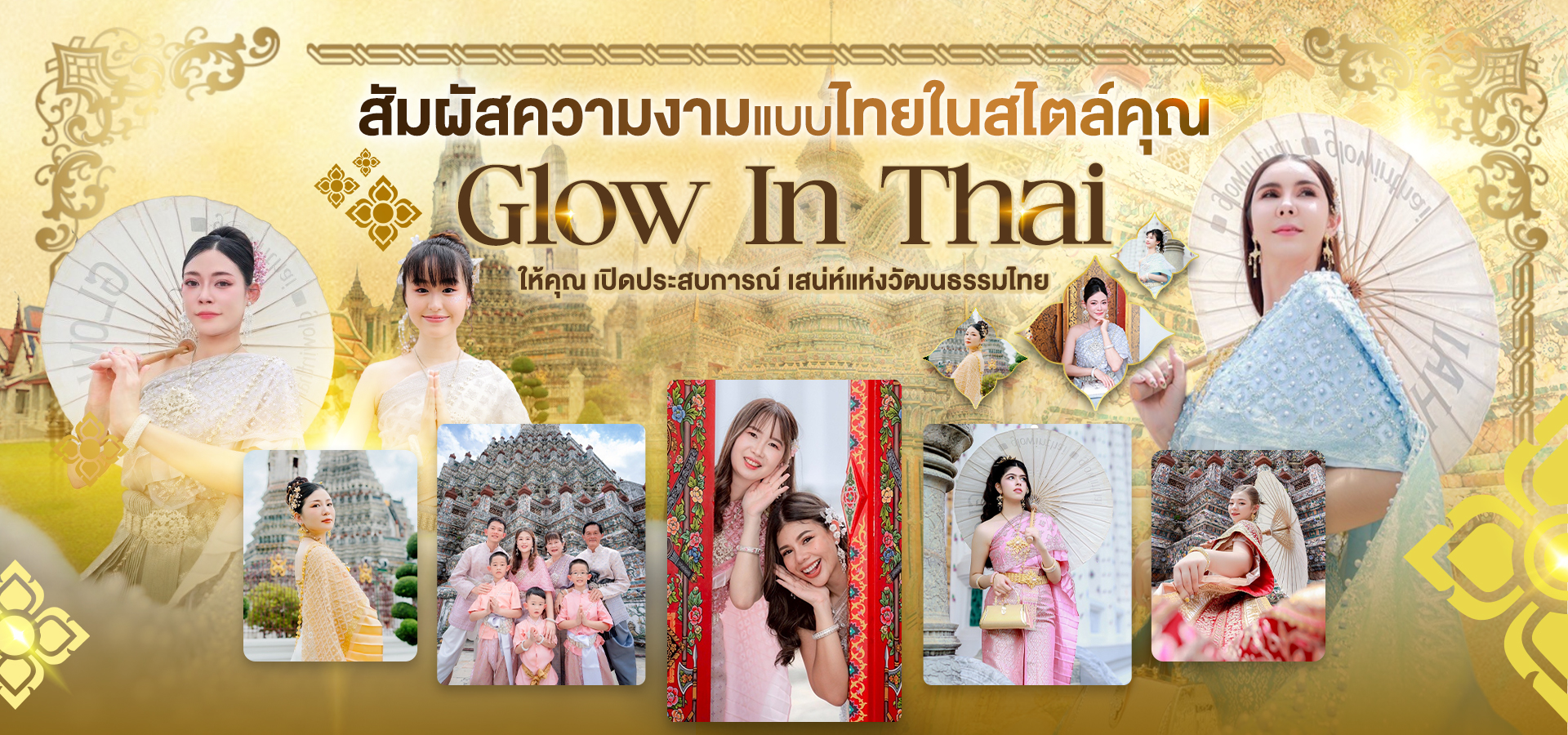 Glow In Thai เกิดจากความตั้งใจที่อยากแบ่งปันความงดงามของชุดไทยให้ทุกคนได้สัมผัส ไม่ว่าจะเป็นนักท่องเที่ยวหรือคนไทยเอง เราคัดสรรชุดไทยคุณภาพดี หลากหลายสไตล์ ตั้งแต่ชุดไทยโบราณ ชุดไทยประยุกต์ ไปจนถึงชุดสำหรับเด็ก เพื่อให้ทุกคนได้สนุกกับการแต่งกายและเก็บภาพความทรงจำอันล้ำค่า และการดูแลอย่างใส่ใจ เพื่อให้คุณมั่นใจว่าวันที่ใส่ชุดไทยจะเป็นวันที่พิเศษที่สุด
